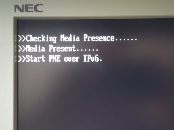 IPv6 のネットワークブート機能(PXE機能)で起動しようとしてところ…。