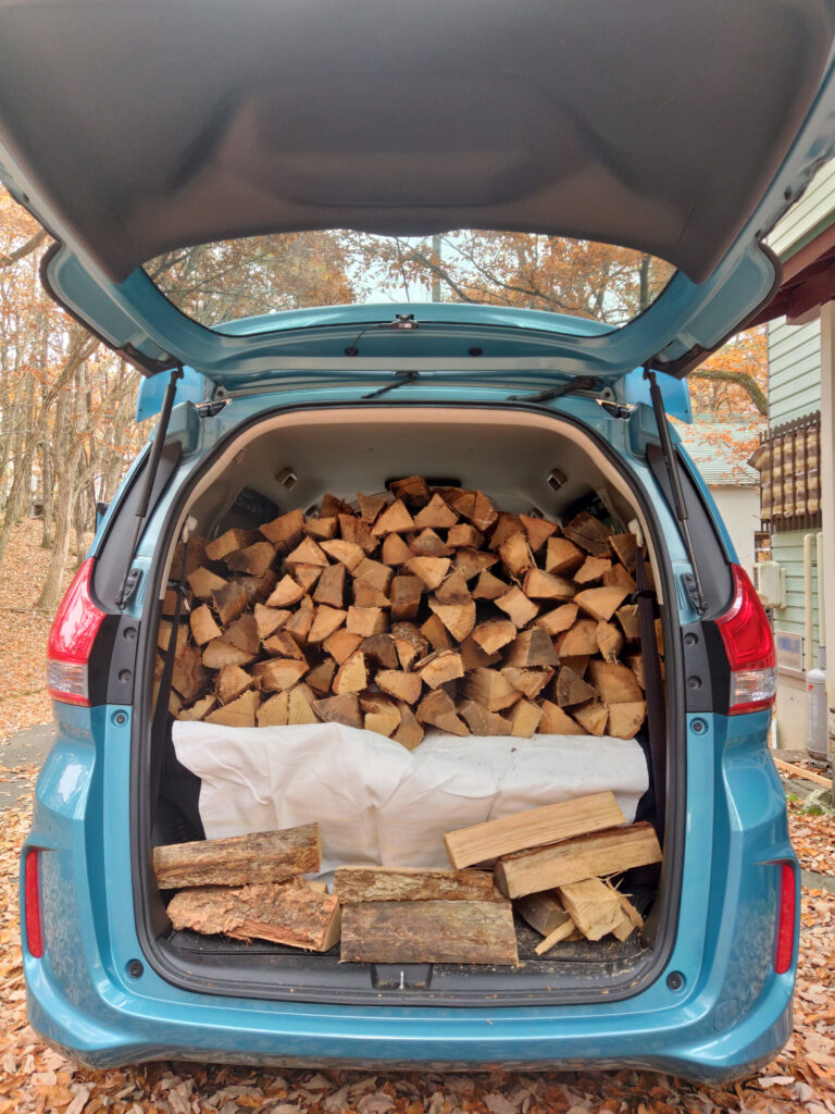 事前に予約しておいて、別荘に向かう途中で薪を購入。
