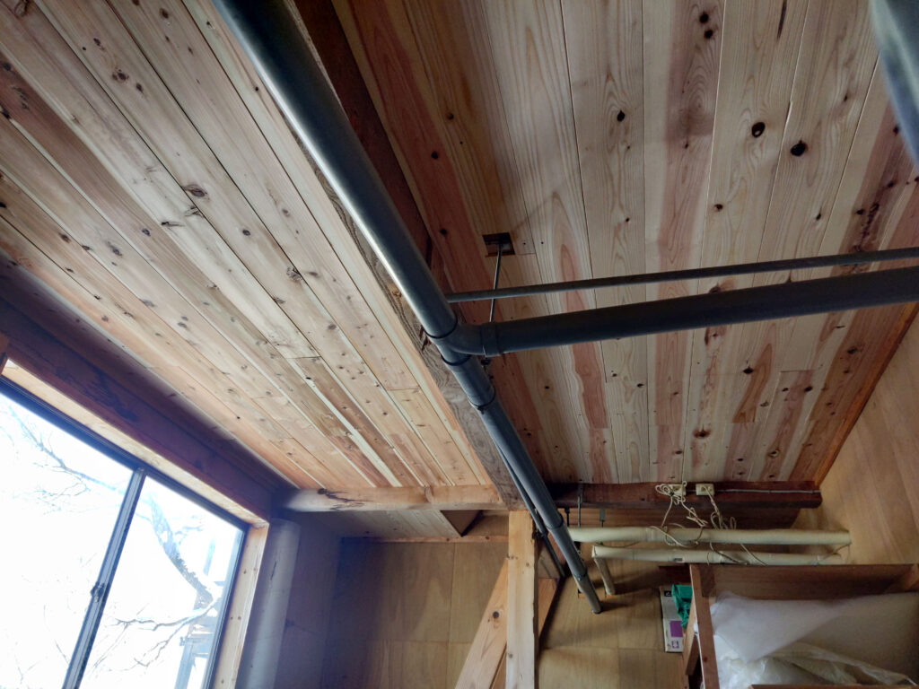 別荘の納屋の6畳ほどの天井施工は二日で終わった。